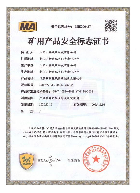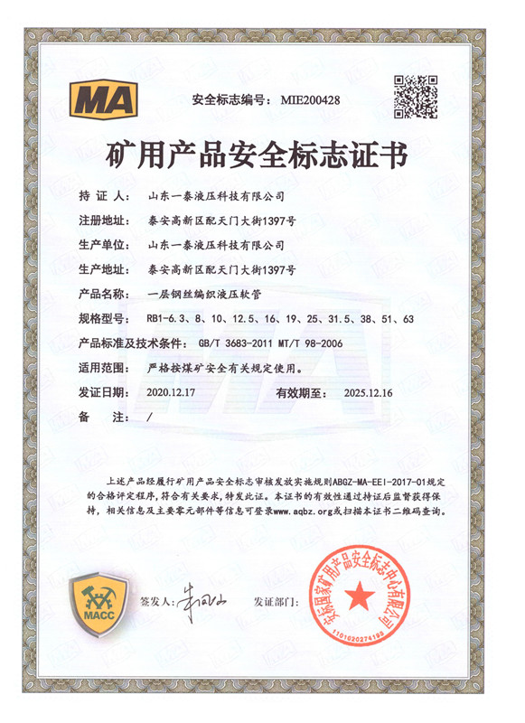山東一泰液壓科技有限公司,坐落于山東省泰安市國家高新技術產業(yè)開發(fā)區配天門大街1397號,總占地面積6萬6千多平方米,總建筑面積4萬多平方米。公司注冊資金7500萬元,資產值3億元。公司始終專注于超高壓石油鉆探軟管、柔性節(jié)流壓井軟管、井控高壓耐火軟管總成、高端機械軟管、以及礦用液壓管體等配套產品的研發(fā)和生產。產品廣泛用于陸地和海洋石油鉆井、勘探、開采、輸送等領域;同時還為軍用系列、大型船舶系列提供了優(yōu)質產品的供應保障和信任服務。